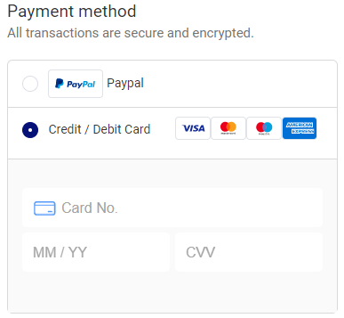 If you want to checkout with a Debit or Credit Card, just enter your * Card No, * Expiration Date, and * CVV.